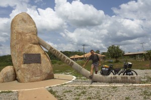 Po čtyřech dnech poprvé na kole překračuji rovník. Je to zrovna uprostřed ničeho, ale je tu jakýsi památník. Tak se chvilku fotím a blbnu (něco ve smyslu – jdu na jih a .. jdu pořád na jih). Taky domů posílám sms, že „konečně jsem za půlkou“. Teda ve skutečnosti sms posílám až za dva dny, když jsem se dostal na mobilní signál.. Je zajímavé, že v podstatě od rovníku se výrazně změnila krajina. Už žádné savany, začala amazonská džungle (taky jsem za chvíli vstoupil do Brazilského státu Amazonas). Všude je hodně vody a spousta míst je zaplavená (jsem tu v období dešťů). A také se ochladilo. V průměru tak o 4 stupně.