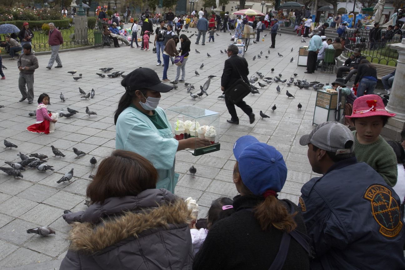 S radostí, že jsem plášť sehnal, jsem se odpoledne vrhnul na další zkoumání města. Kousíček od mé čtvrti je Mercado de Hechicería (čarodějnický trh). Neprodávají se tu ale kouzelnické pomůcky, ale přírodní medicína. Plus pár zajímavých ingrediencí. K čemu asi může být malá vysušená lama nebo co to vlastně je? V La Paz je hodně malých i velkých náměstí. Některá jsou u starobylých budov, jiná uprostřed normální zástavby. Všechny mají ale společné, že sem chodí lidé relaxovat a vždy se tu nabízí nějaké dobroty. Od jogurtu s ovocem, přes rosol se šlehačkou až po zmrzlinu. A tak ochutnávám a ochutnávám..