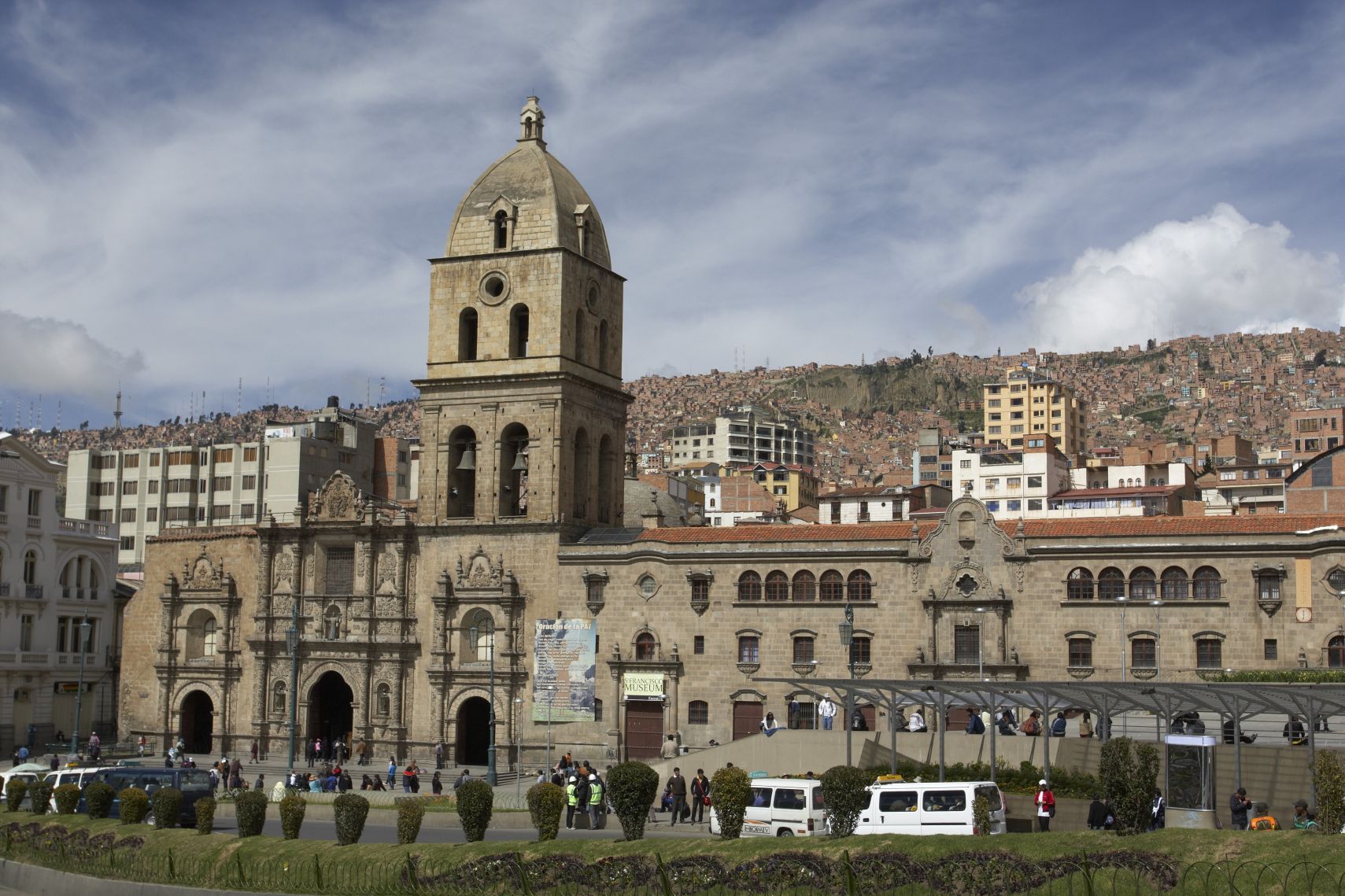 Z jedné strany toto údolí obklopují vysoké hory. Za pěkného počasí lze za La Pazem vidět zasněženou Mt Illimani – horu vysokou 6 402 mnm. Na druhé straně údolí začíná rovina náhorní plošiny Altiplana. Ovšem ta nejde vidět, protože La Paz nahoře nejdříve plynule přechází v město El Alto. Ubytovávám se ve středu údolí, v turistické čtvrti. Ta je nabytá hotely, obchody se suvenýry, restauracemi, cestovkami a obchody s vybavením na hory.
