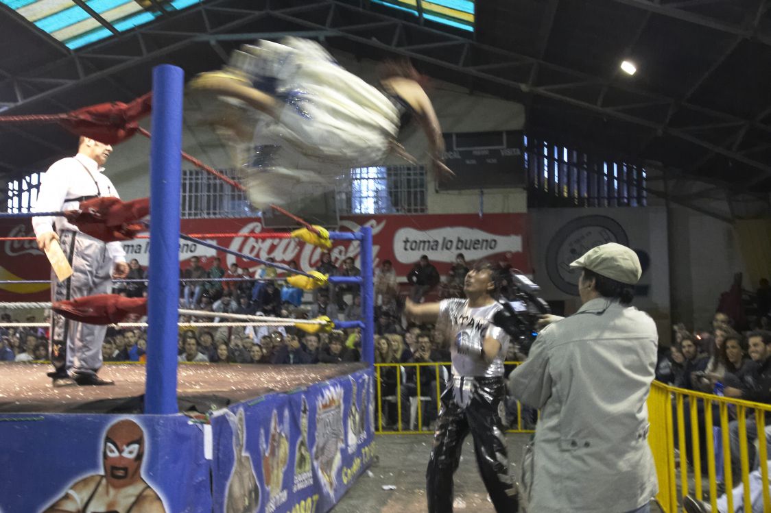Specialitkou La Paz je, že tyto ženy v krojích se mydlí s chlapy v ringu. Na začátek musím zdůraznit, že absolutně nemám rád americký wrestling. Nechápu ho a nechápu ani jeho diváky. Asi nejvíc mi vadí, že se bere strašně vážně, ikdyž je to v podstatě komedie. A to byl přesně důvod, proč se mi opravdu hodně líbil Cholitas wrestling. Tady si na nic nehráli. Sranda od začátku do konce, samozřejmě proložená artistickými prvky wrestlingu. Navíc to nebylo jen divadlo pro turisty, ikdyž turistů tu bylo hodně (vstupenky se prodávají v centru jako výlet). Celé to probíhalo v takové větší tělocvičně kus cesty z centra. Uprostřed ring, kolem dvě řady židlí pro turisty, pak další asi čtyři řady pro místní diváky. Sranda byla, že tu nebyl záchod. Na něj se chodilo ven na ulici, a tak člověk dostal razítko na ruku jako na nějaké diskotéce, aby se mohl i vrátit. Čekal jsem, že spolu budou bojovat cholas navzájem, ale většinou bojovala žena proti muži. Což bylo taky asi jediné divné, protože chvilku vyhrával i chlap a když „mlátil tu paní v sukni“, tak „to prostě nebylo správné“. Ale ona nakonec stejně vyhrála chola. Takže to skončilo dobře. Jak říkám, zábava od začátku do konce. Moc jsem si to užil.