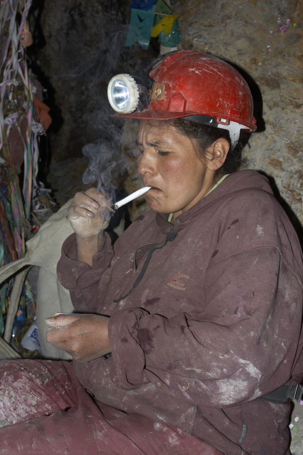 Hned jak jsem se ubytoval, domluvil jsem si na další den prohlídku dolů. Doly nejsou státní, ale je tu hodně soukromých cooperatives – parta horníků se spojí a kutají ve své štole/štolách. Jsou tři „kasty“ horníků: member a manager (ti jsou vlastníci cooperative) a pomocníci. Pomocník pracuje jen na dobu určitou, třeba na den. Dělá za cca 100 BOBů (15 USD) na den. Plat je většinou sjednán pevně bez ohledu na výtěžek. Nemá ale žádné pojištění, nic. Když se mu něco stane, tak má prostě smůlu. Manager i member, jakožto vlastníci cooperative, platí daně (podle množství vyvezeného materiálu) a od státu tak mají pojištění a penzi, pokud se jí dožijí (když ne, tak ji dostane manželka). Oni ovšem žijí s výtěžku dolu a když se nedaří, tak mají kulové. Bez ohledu na postavení ovšem v dolu pracují všichni stejně a dělají stejnou práci. Tak nějak jsem čekal, že to nejhorší odmaká pomocník, ale prý ne. Všechna práce v dole je ruční – tlačení vozíku, kopání krumpáčem, nakládání. Jsou tu jen dvě nové technologie – kompresor, který vhání čerstvý vzduch hluboko do podzemí a dynamit (to vlastně moc nová technologie není, co?). Jinak je to stejné jako před 500 lety, kdy se tu kopat začalo. Hornící dole v dole nejí, protože to není zdravé. Ale šichta je dlouhá, tak v přestávkách žvýkají koku, která zahání hlad a tlumí bolest.