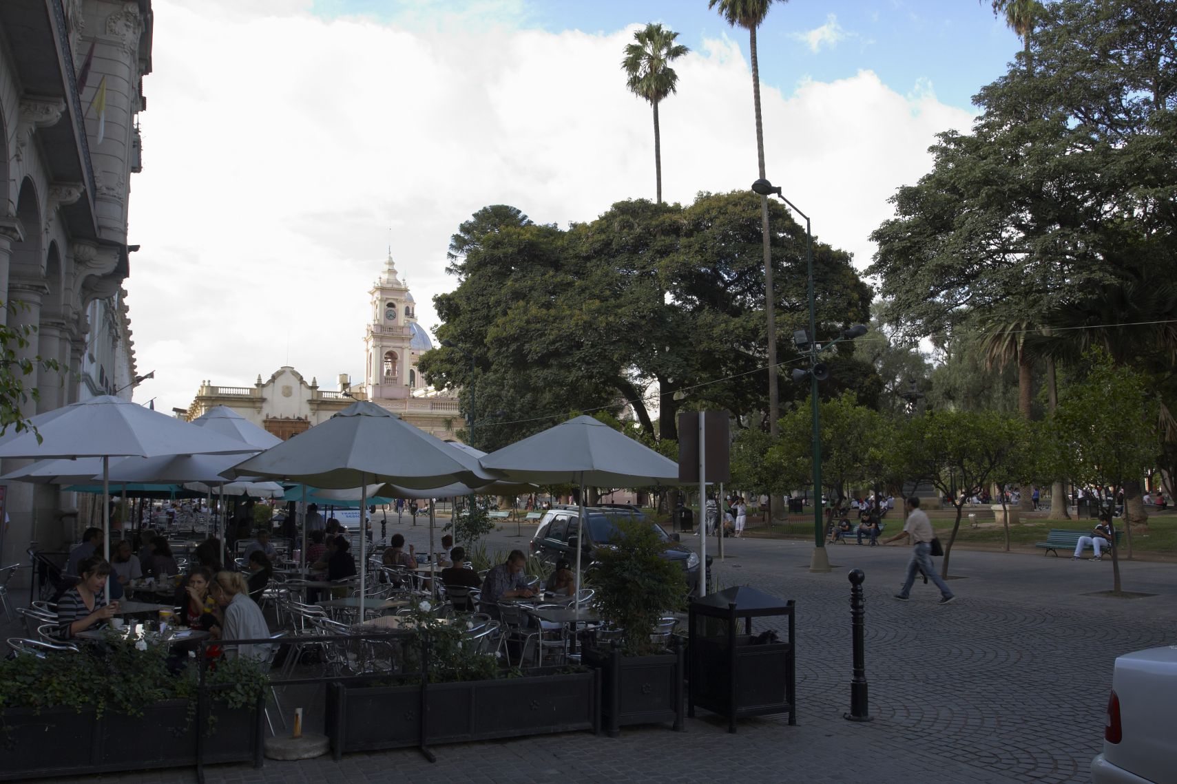 Cesta mezi městy Jujuy (čti Chuchuj) a Salta je nádherná. Skončila poušť a začala zelená krajina. Skoro jakoby někdo vystřihl kus Čech a nalepil je do Argentinské pouště. Okolo jsou louky a pole, spousta stromů a za nimi v dálce zelené kopce. Nádhera. Navíc tu už není moc velký provoz, protože jsem uhnul z hlavní silnice na vedlejší. Tohle jsou po tom nepovedeném sjezdu zase krásné cyklistické dny. Salta je mé první velké město v Argentině (cca půl milionu obyvatel). Bohužel je zrovna Semana santa (svatý týden před velikonocemi), kdy si spousta lidí bere dovolenou a tak je to bráno jako hlavní sezóna a ceny hotelů letí nahoru. Platím 40 USD za noc (nejvíc od Caracasu). Salta je pěkné město evropského stylu. Hromada obchodů, kaváren, pěší třídy, náměstí s venkovními restauracemi. Já tu mám dva úkoly. Nechat si vyprat kalhoty a mikinu a koupit pneumatiky. První není sebemenší problém. S pneu je potíž. Obíhám 5 obchodů, ale nikde je nemají. Až pak jsem objevil cyklistický ráj. Obrovský obchod s nepřeberným množstvím horských kol. Ptám se na pneu a prý mám jít z druhé strany bloku, že tam prodávají díly a tady jen celá kola. Uh! Z druhé strany je obrovská hala plná cyklodílů. Beru si pořadový lísteček (!) a čekám. Dost mi to tu připomíná GME. Chlapíci za pultem pobíhají a donaší požadované díly. Jsou absolutně chladní a neosobní, ale naprosto své práci rozumí (takže jako v GME). Tohle byl taky jediný obchod, kde měli náhradní gumové špalíky do brzd. Všude jinde měli jen celý komplet. Nakonec jsem tedy našel dvoje pneumatiky mého rozměru. Thajské a ze Srí Lanky. Beru ty druhé. Vypadají docela dobře. Večer je měním. Jsou sice dost tuhé a trošku užší než mé předchozí (38 vs 42 mm), ale teď už budou hlavně asfaltky, tak to nevadí. Na omak jsou taky o dost víc plastové. Ale sedí dobře. Hurá. Spát jdu zase po druhé hodině.