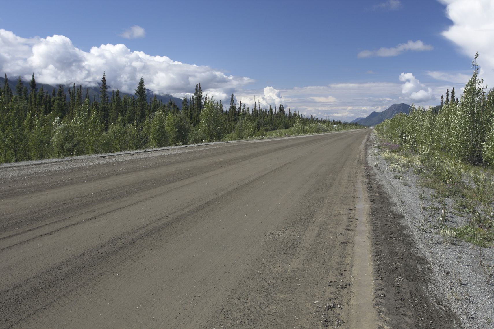Kousek za Beaver Creekem stojí cedule – rekonstrukce silnice dalších 184 km. Fakt nekecám. Skoro 200 km rozkopané silnice, kde už me ale nikdo nepřeváží. Vždycky kus asfaltu, kus rozkopaný. A tak pořád na střídačku.