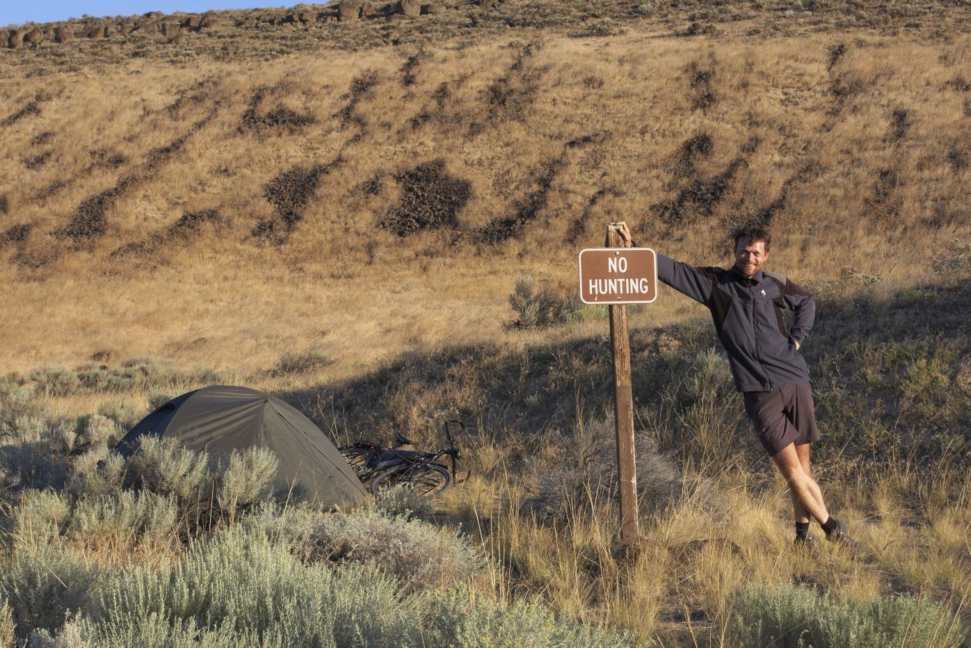 V městě Yakima se nemůžu dlouho vymotat. Stále narážím na dálnici (freeway), kam na kole nesmím. Aniž bych se ptal, zastavuje u mě chlapík na kole a nabízí pomoc. Že mě z města vyvede. Je strašně ochotnej. A tak spolu jedeme asi 10 km, než se dostaneme na mou výpadovku. Bere to samýma malýma uličkama a dost to „po americku“ řeže. Prolítáva křižovatky hlava nehlava, zkracuje si různě cestu přes benzinky,.. Jakoby za ním jeli poldové a on měl plnej batoh heroinu. Jsem docela rád, když už jsem nakonec zase sám a jedu jak se na středoevropana sluší a patří – pěkně opatrně podle předpisů
