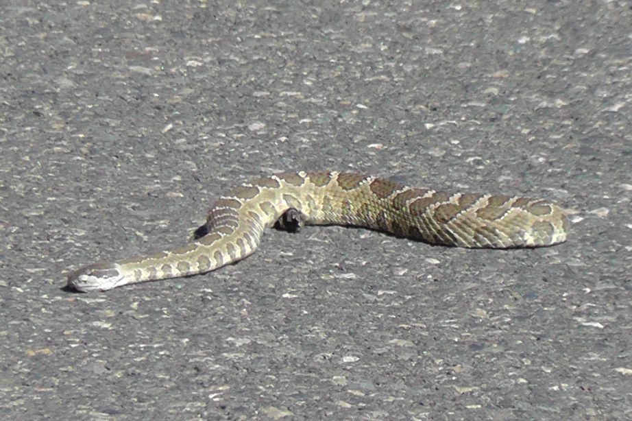 A na závěr jako obvykle o zvířátkách. Docela si začínám zvykat na pocit, že tu prostě chřestýši jsou. Vždyť lidi tady normálně žijí a hadi jim nevadí. Ono vlastně nakonec není proč. Chřestýš se živí malými hlodavci nebo ptáky. Na člověku si nic nevezme, takže ho kousne pouze v sebeobraně. Navíc není ani moc agresivní a raději zdrhne, pokud má příležitost. To jsou samé pozitivní zprávy. Ale řekněme, že narazím na naštvanýho hada, který si na mě bude chtít vybít zlost. Tak potom v případě kousnutí, pokud člověk dostane sérum proti jedu do dvou hodin, tak je téměř stoprocentní šance, že se to obejde bez následků. No a já jsem na silnici, takže ke mě může záchranka dorazit bez problémů do pár desítek minut. I statistika mluví v můj prospěch – ročně kousne chřestýš v USA 7000 až 8000 lidí a z toho jen 5 umře. Docela uklidňující ne? A jak mi řekl jeden místní – když do něj nekopeš nebo nestrkáš klackem, tak on ti nic neudělá..