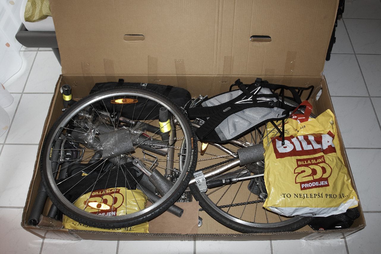 Uzávěr se vyměnil (3 hodiny práce a 1200 Kč, grrr) a mě se podařilo kola nacpat do dvou obrovských krabic. Kromě nich máme ještě každý jeden velký černý pytel, ve kterém jsou zabalené cyklotašky,které jsem už nenarval ke kolům. Povolený limit na krabici s kolem je 30 kg a je to tak tak (spíš lehce přes). Naštěstí na letišti v Zurichu nic neřeší a krabice ani neváží.