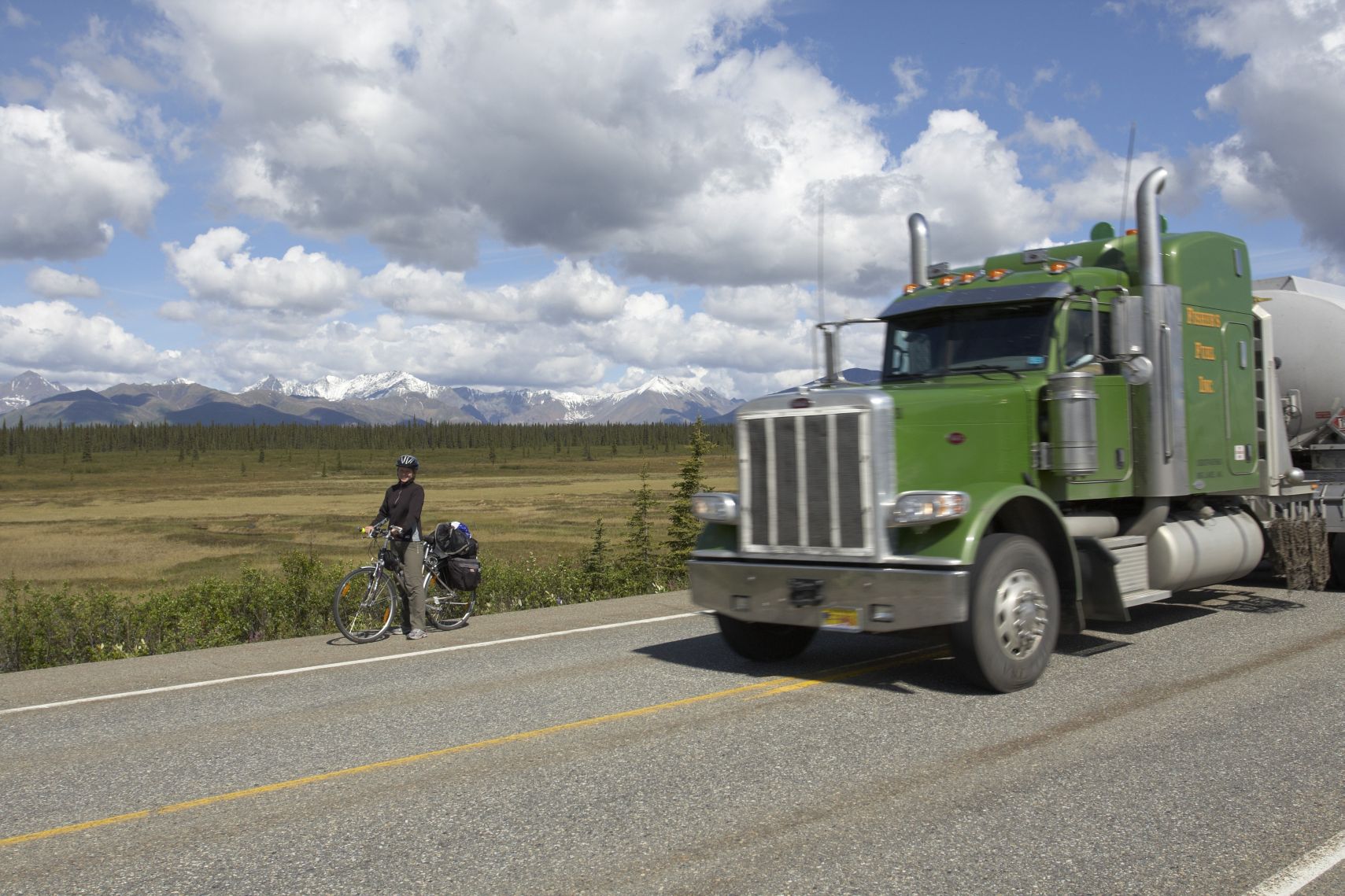 V noci zase lije. Ráno lije. Přestává znovu až před polednem. Vzhledem k tomu, že je tu polární den a tma (pokud se tomu šeru dá říkat tma) je v noci tak maximálně dvě hodiny nám to zase až tak nevadí. Ráno si můžeme udělat v podstatě v kteroukoliv denní dobu. Cesta vede stále po asfaltu, jede se dobře. Dnes ani nepřší, chvílemi vysvítává slunce a je příjemných 18 stupňů. Já sundávám bundu, aljaščani pobíhají v kraťasech a letních šatech. Léto je relativní.